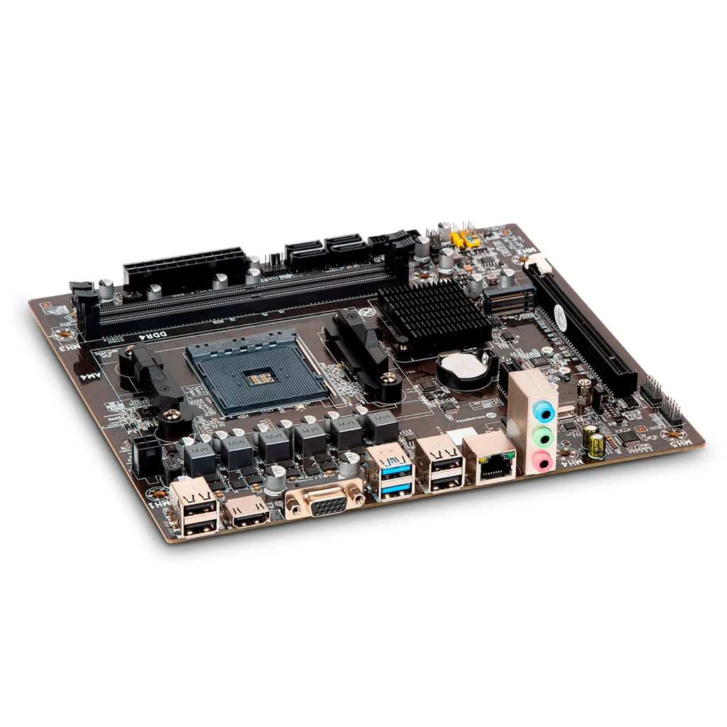 Placa Mãe AMD A320 DDR4 | Goldentec suporta os processadores AMD Ryzen e também conta com soquete AM4, suporta até 64GB (2x 32GB) com memória DDR4.